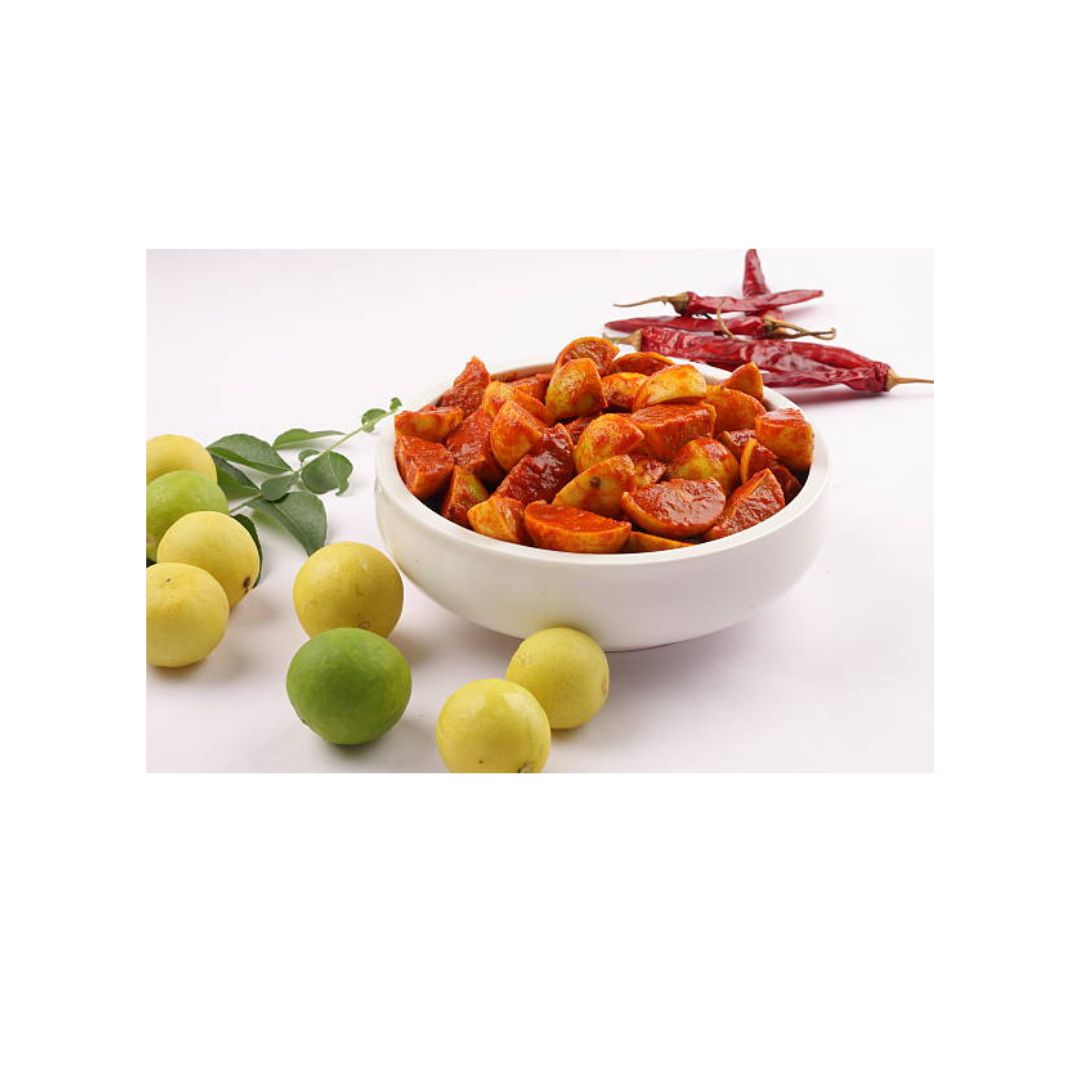alayamani Lemon Pickle is made from the richest and fresh ingredients from the Indian farms. This classic lemon pickle has been savoured by everyone. It contains ingredients like sugar, lime and other spices. It is spicy and a little bit tangy. It is a very good source of Vitamin C. Enjoy this flavourful pickle with every meal and provides a great Indian taste to all your dishes.