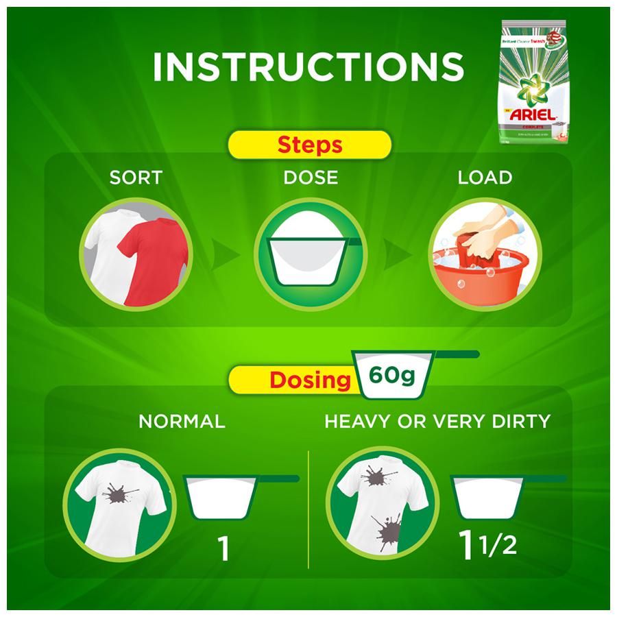 New & improved Ariel Complete gives you tough stain removal for a bright clean and long-lasting freshness in just 1 wash, and is specially designed with semi-automatic washing machines and handwashing in mind. So now, goodbye stains and dullness!