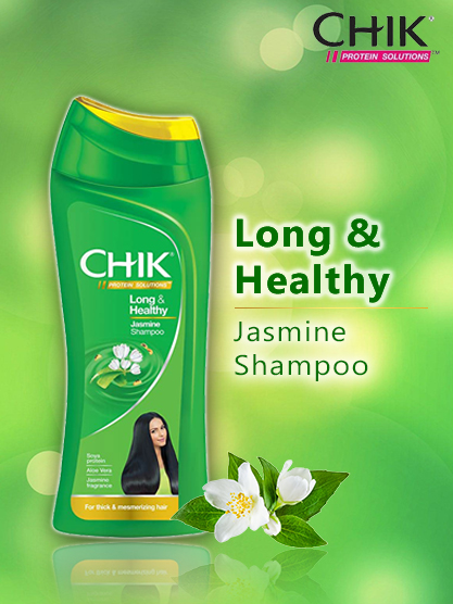 Chik Long & Healthy Jasmine shampoo is herbal shampoo that contains the goodness of Aloevera and Soya Protein It strengthens hair from roots and helps to get longer and thicker