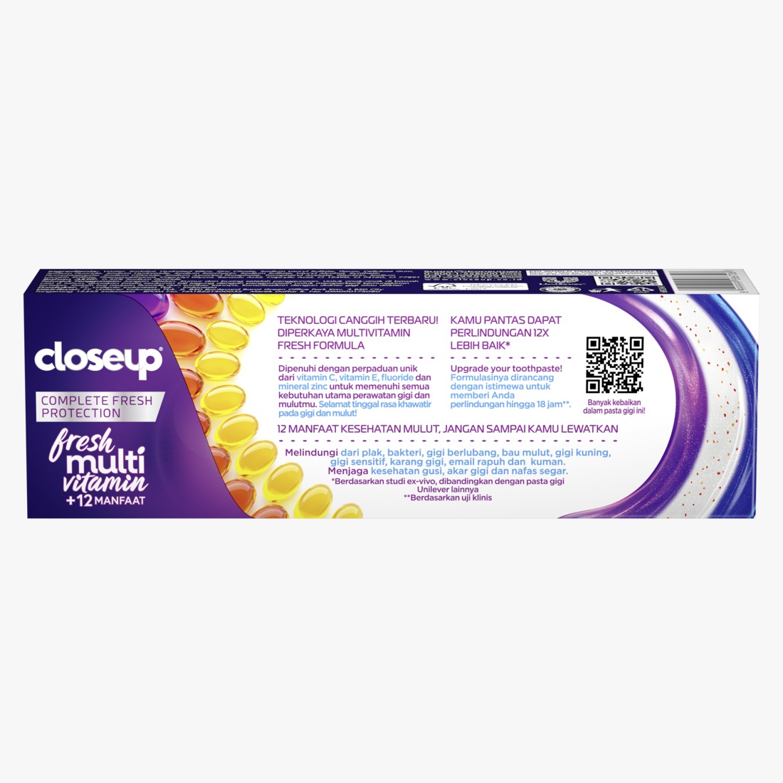 Closeup Multivitamin Tooth Paste toothpaste is the perfect choice, because possesses the 12 benefits more important for a care full: protection against bacteria, bad breath, teeth yellowish, erosion enamel, attack acid, spots, caries the root, care the gums, sensitivity, Leaves you feeling refreshed all day long