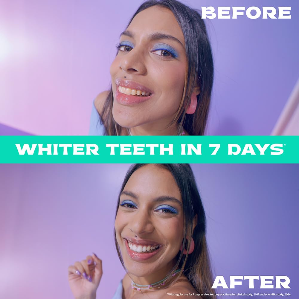 With the power of micro-brighteners: This innovative toothpaste gently removes surface stains (casued by foods like coffee, wine, tea etc) polishing your teeth and giving you whiter teeth in 7 days