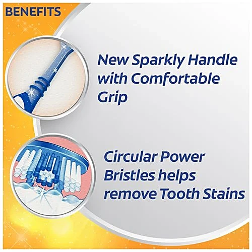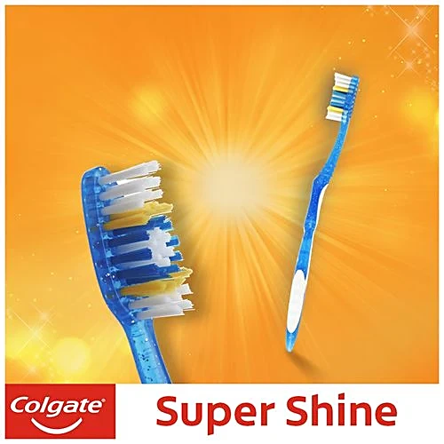 Colgate Super Shine Toothbrush works to make your teeth look shiny and healthy. It comes with circular power bristles, which help remove tooth stains. Its soft bristles ensure gentle cleaning on the teeth and around the gums. The new Colgate Super Shine Toothbrush also comes with a sparkly handle that offers a comfortable grip for an enhanced brushing experience in every use. Use Colgate Super Shine with your regular toothpaste for a shiny, bright and confident smile every day!