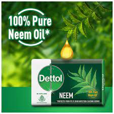 Dettol Neem Bathing Soap Bar – 100% Pure Neem Oil, Provides 99.9% Germ Protection Dettol Neem soap protects from 99.9% of skin infection-causing germs.Contains 100% pure neem oil for gentle, deep cleansing. Contains more than 85% naturally derived ingredients and plant-derived cleansers.