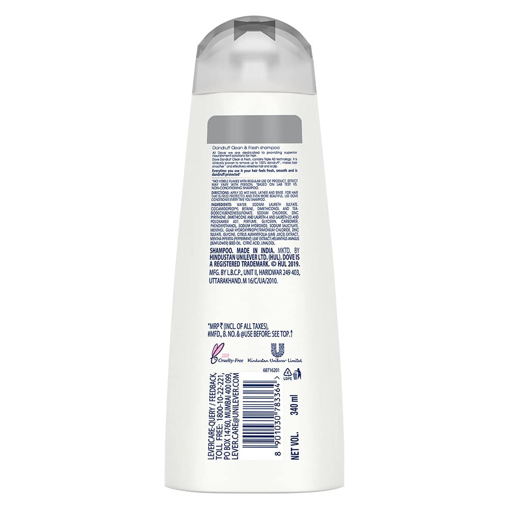 Now say ‘bye’ to dandruff flakes and that itchy feeling with New Dove Dandruff Clean & Fresh shampoo. This shampoo removes dandruff from your scalp and also gives a cool & fresh sensation. It nourishes your hair from roots up, giving you hair that’s 100% smoother and up to 100% free of dandruff.