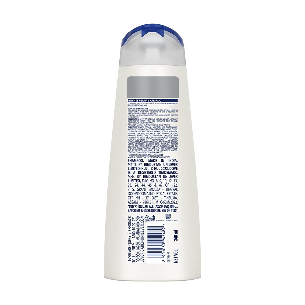 Dove Intense Repair Shampoo gives you healthy looking and strong hair against breakage and makes your hair more beautiful Dove shampoo repairs the damage caused due to heat hair styling or hair colouring