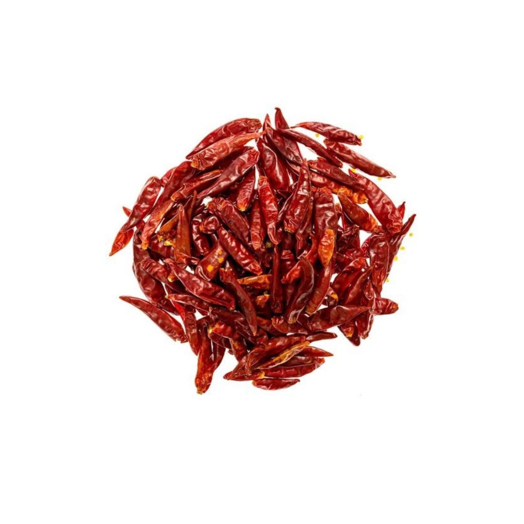 This type of dry red chillies in India come from the state of Karnataka. Like Kashmiri red chili, this also gives a rich deep color to the dish. It is mildly spicy and can be used as an alternative for Kashmiri dry red chili. It is also an important ingredient in Udupi cuisine.