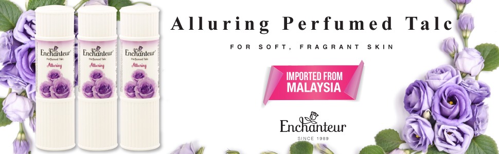Enchanteur Alluring Perfumed Talcum Powder for Women with Classic Notes of Roses Enjoy the sensual fragrance of passionfruit flowers, roses and vanilla with the new Enchanteur Alluring Perfumed Talc. This easy-to-apply talc leaves your skin powdery soft, and even toned. Apply it, and you’re all set for your date nights.