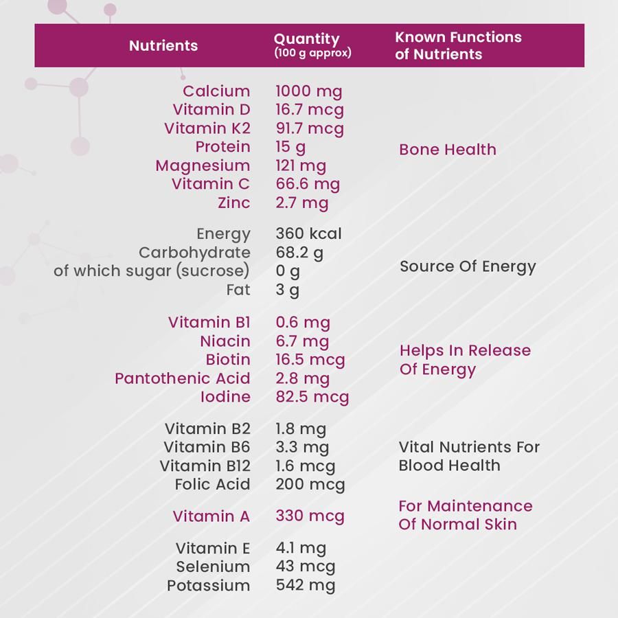 Horlicks Women's Plus is a health food drink, which helps meet the nutritional requirements of women in the age group of 19-50 years. It provides 100% of your daily requirements of calcium, Vitamin D and Vitamin K2 along with other vital nutrients to help maintain strong bones.