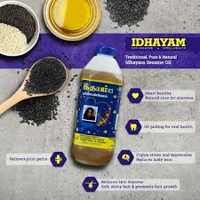 Idhayam oil is cholesterol-free & good source of essential fatty acids. Our Sesame (gingelly) oil is tested & certified for its purity. Premium Sesame Seeds. Sesame oil is suitable for all type of cooking shallow frying, deep-frying, dressing of salad or can go excellent as raw oil with Idli podi/chutney.