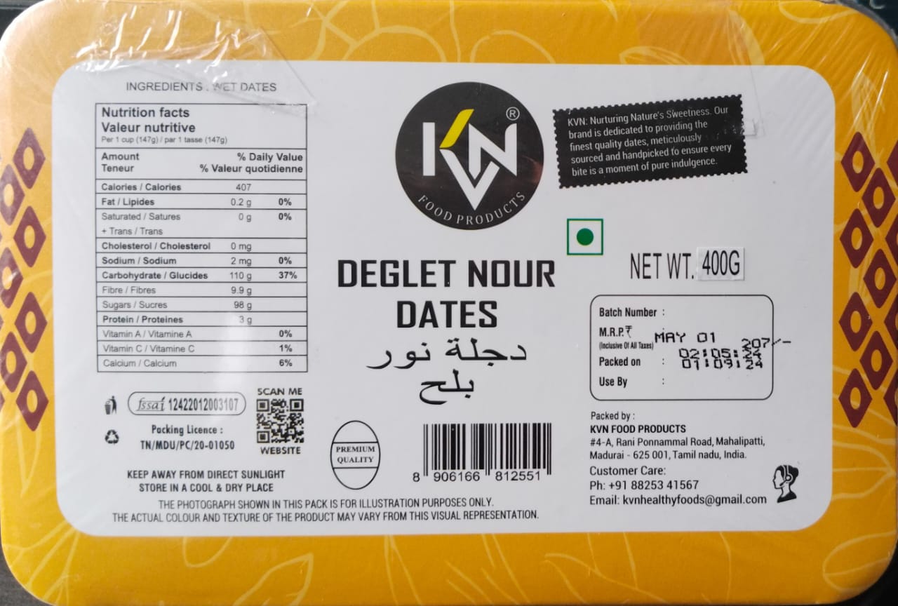 KVN Deglet Nour Dates – 400gm – கே. வி. என் டெக்லெட் நூர் டேட்ஸ்