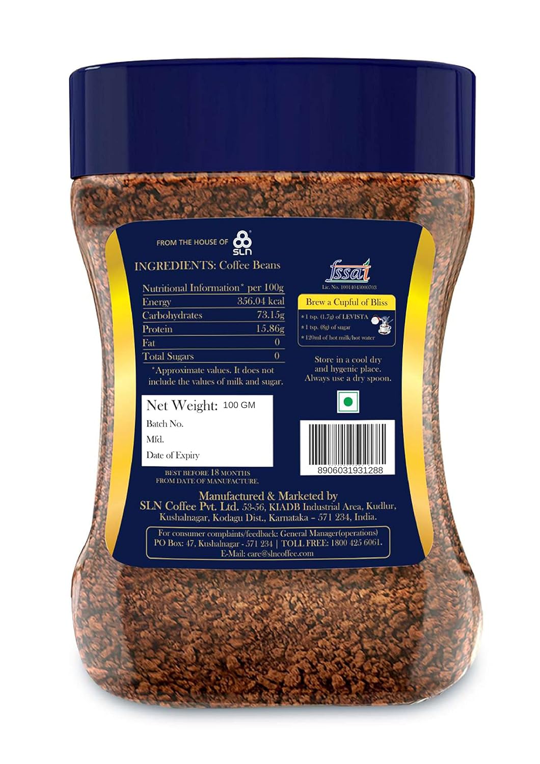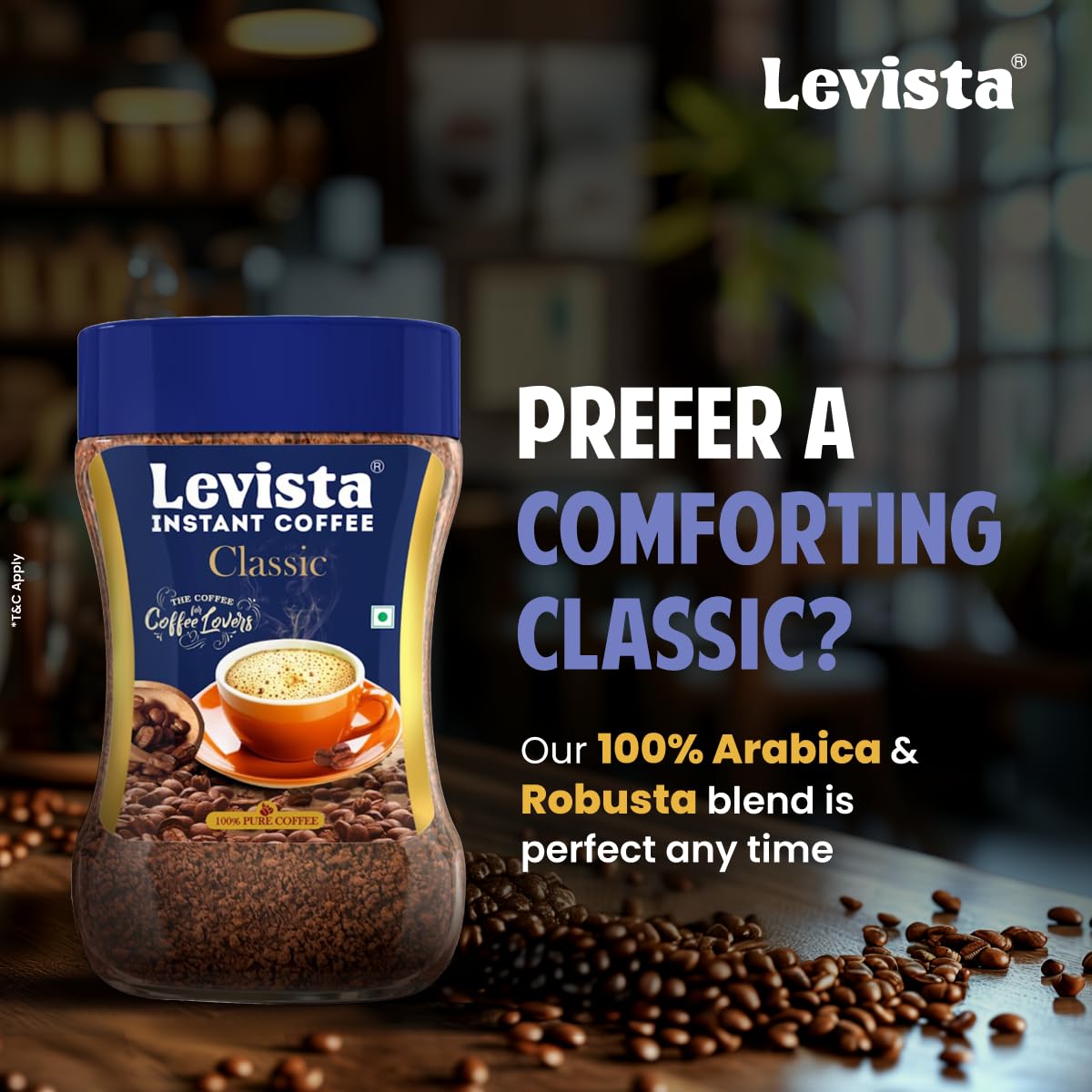 Levista is made from the finest quality coffee beans handpicked from our own estates in Coorg. The beans are then artfully roasted and processed to treat coffee lovers to an absolutely memorable experience. Levista is born from the 60-year legacy of SLN coffee. The finest quality coffee beans are handpicked with love from our estates in Coorg and go into making the best cup of coffee you'll ever have.
