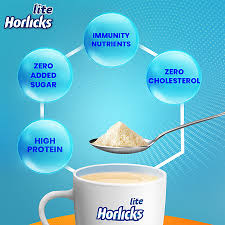 Lite Horlicks has No Added Sugar* and Zero Cholesterol^ for Active adults. High Cholesterol^ intake may increase blood lipid content. Zero Cholesterol intake can contribute to a healthy diet.