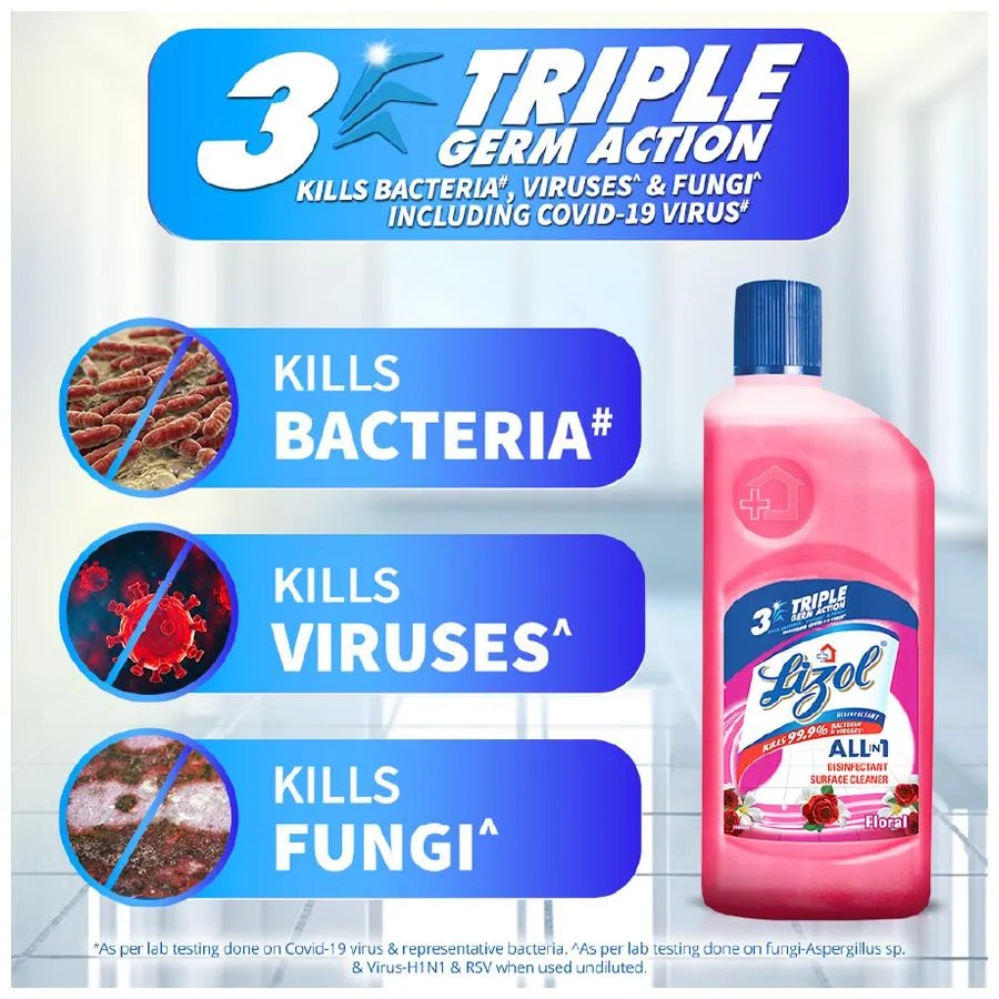Lizol is India's No. 1 floor cleaning brand and recommended by the Indian medical association. Keep your home fresh and germ-free with Lizol. Lizol disinfectant surface cleaner contains a distinctive formulation that kills 99. 9 percent Germs and gives 10 times better cleaning and germ protection than standard phenyls, keeping the whole house cleaner, shinier and germ free. The product is available in 7 different fragrances and is perfect for floors, tiles, sinks, kitchen counters and all other washable surfaces in your home. We are constantly exposed to micro-organisms. Exposure to bad germs can cause food poisoning, diarrhea and other kinds of sickness in individuals. The best way to fight them off is Lizol. Lizol floor cleaner saves you from harmful germs whilst keeping you and your home clean. So, practice good hygiene and cleanliness with Lizol that will prevent these problems. Lizol disinfectant surface cleaning liquid can be used either directly or diluted. For light soiled areas you should clean with Lizol mixed with water, whereas, for heavy soiled areas it can be used without any dilution. Lizol takes complete care of your family by keeping your kitchen, bathroom, floor and furniture clean.