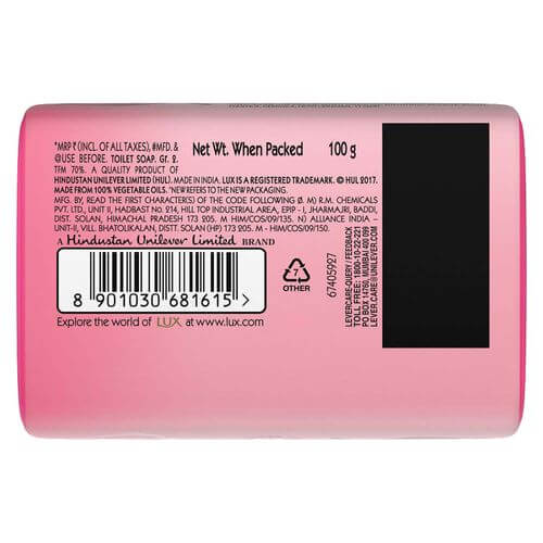 The Lux Rose & Vitamin E soap bar adds a touch of glow to your skin and leaves it beautifully fragrant. Infused with 7 beauty ingredients, combining essence of aromatic French Rose known for its soothing and beauty enhancing benefits, and with Vitamin E know to moisturize and nourish skin, this bar leaves your skin soft, smooth and glowing This soap for bathing, not only effectively removes dust and sweat on your skin, but also leaves it feeling gently cleansed.