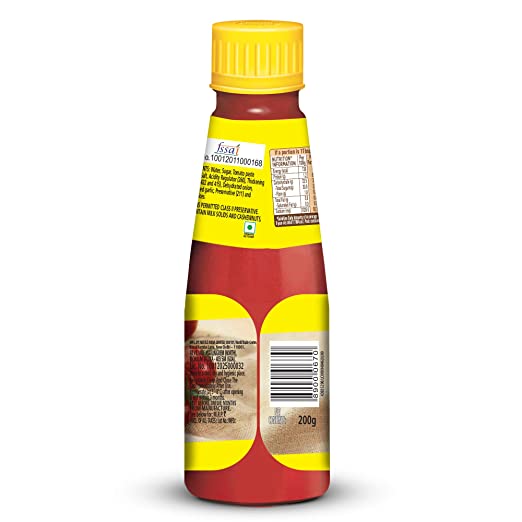 Maggi’s delicious rich Tomato Ketchup adds a tang to any dish with its unique taste. The hero to your snacks and the best accompaniment to a boring meal, Nestle Maggi Ketchup assure everything from samosas, noodles, pakodas to plain chapatis is perfect and yummy. Nestle Maggi Tomato Ketchup is made with tomatoes and a combination of spices to create a truly lip-smacking flavour that everyone loves. Great with snacks like burgers, fries, pizza, pasta, and more, Nestle Maggi Tomato Ketchup is fresh and healthy.