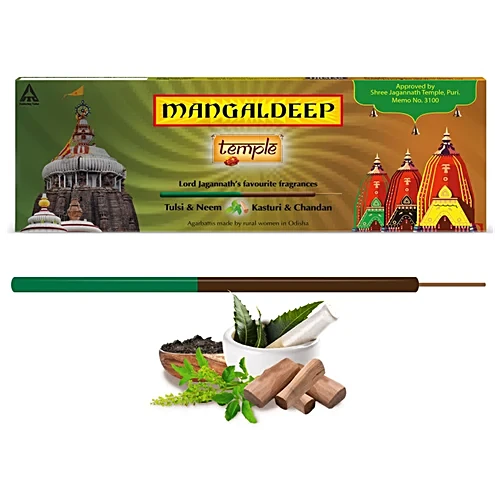 A first of its kind product with dual fragrances and dual colours in the same stick, these agarbattis are dedicated to Lord Jagannath, Puri. They are created with the Lord's favourite fragrances - Tulsi and Neem in one half; Kasturi and Chandan in the other half. It has been made with love by the devotees of the Lord in Puri, Odisha itself.