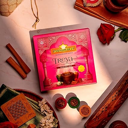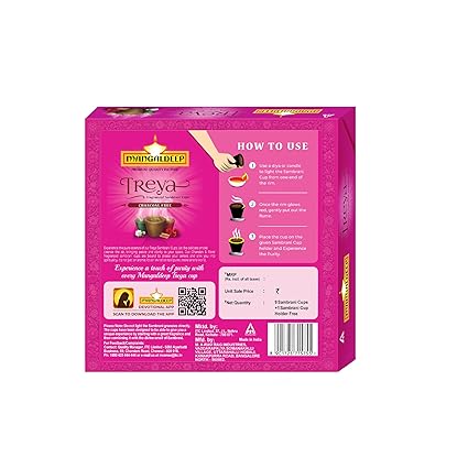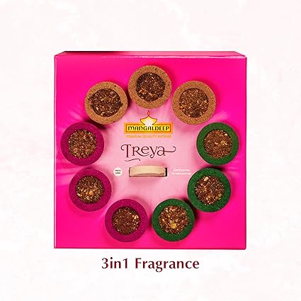 India's no. 1 dhoop brand mangaldeep brings to you treya sambrani cups with the " power of 3 " for your daily puja. For the first time experience 3 different fragrances in sambrani. The pack has 9 sambrani cups with 3 different fragrances available in 3 differently coloured cups along with a free holder.
