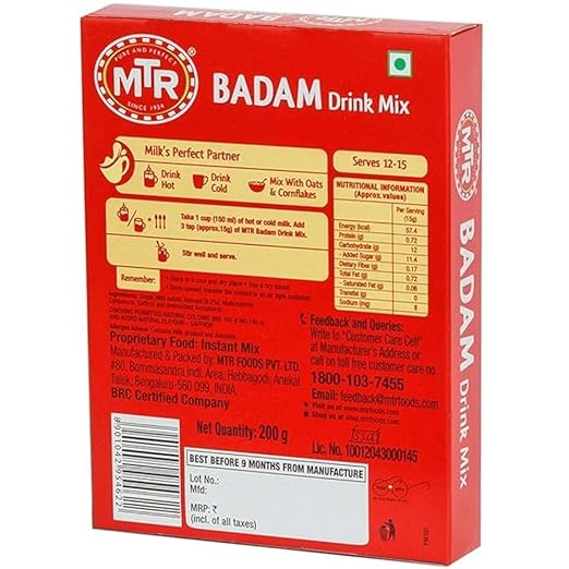 MTR Badam Drink is the perfect combination of Badam, Kesar & Elaichi and so delicious that Since the ancient times, Badam and Kesar have been well known to possess natural qualities that are good for both body and mind and also help in boosting immunity & strength.