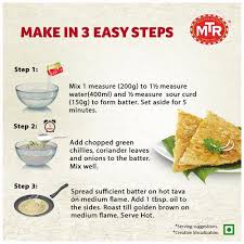 6. Add Curd To Ready-To-Make Mix, Set aside for 5 minutes. Add chopped green chillies, coriander leaves and onions to the batter. Spread sufficient batter on a hot tava on medium flame and roast with oil until golden brown. Serve hot.