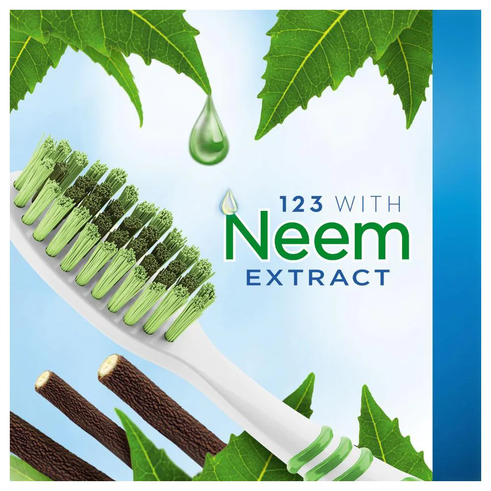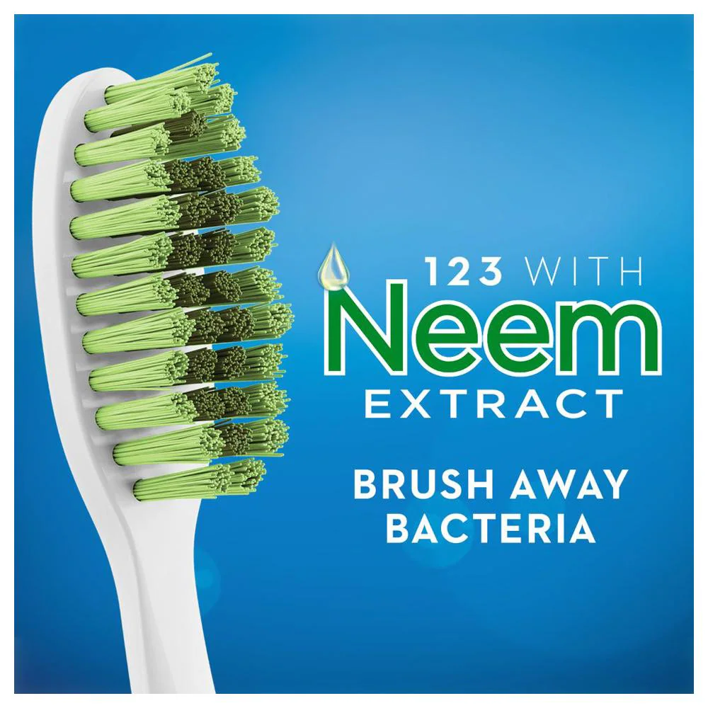 Its Z-shaped bristles are designed to clean in-between teeth and along the gum line while its molded tongue cleaner is designed to help freshen the breath. Also, its bristles are infused with neem extract and are soft on your gums. Neem is known for its anti-bacterial properties, therefore it has been used for brushing and teeth-related things for ages.
