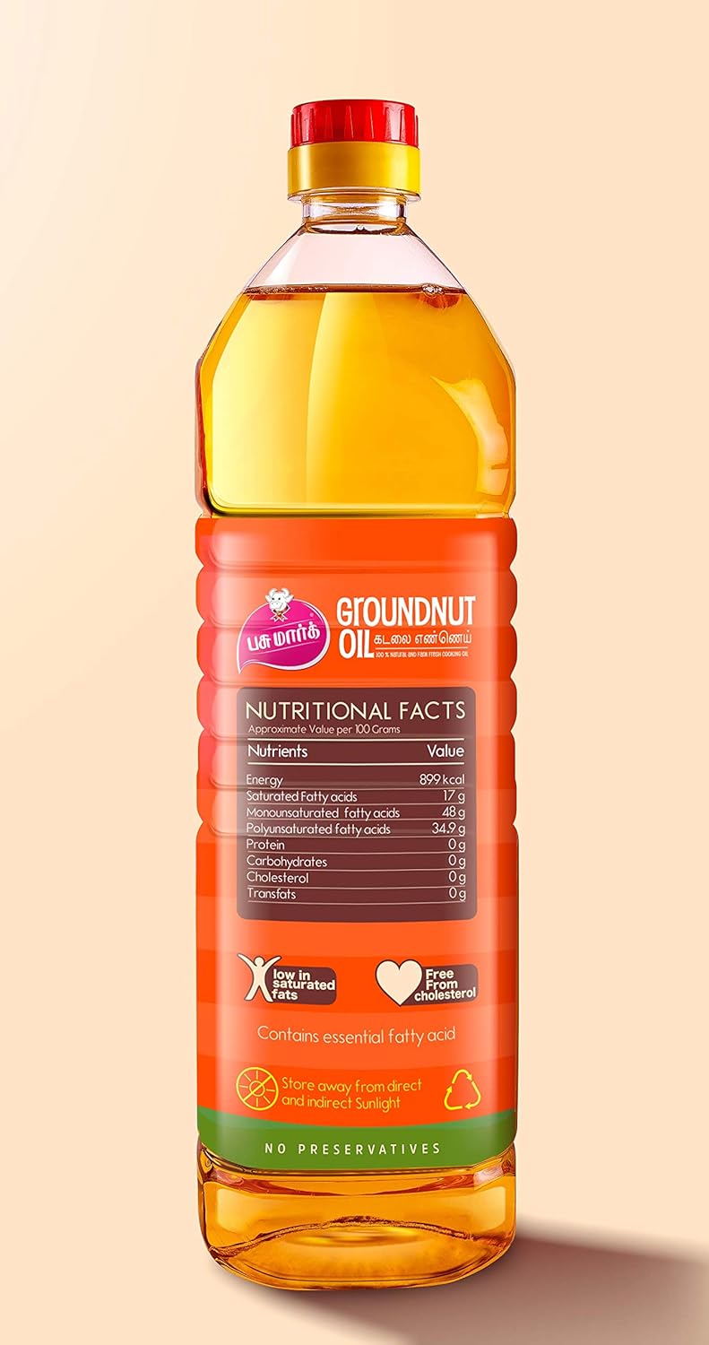 Pasumark Chekku Groundnut Oil is made from good quality groundnuts. The groundnut oil is enriched with Vitamin A, D & E. It is light and contain all the essential nutrients. It is ideal for deep frying as it has a high smoking point. The oil has a strong peanut flavour and aroma.