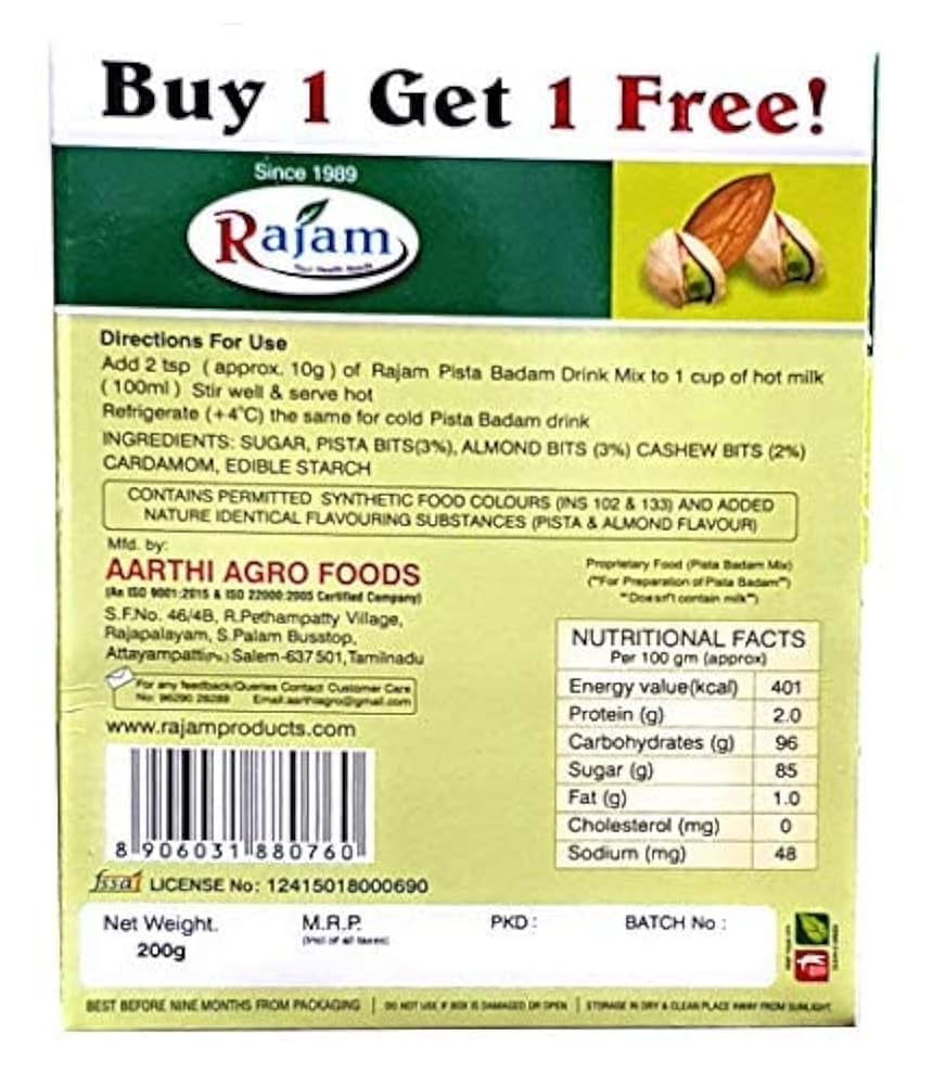 Rajam Pista Badam Drink Mix 200G-ராஜம் பிஸ்தா பாதாம் மிக்ஸ் 200G
