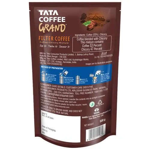 Introducing Tata Coffee Grand Filter Coffee which leverages the deep heritage of Tata in coffee and delivers an intensely rich, fresh, and aromatic coffee. Get a fresh start to your mornings with a sip of freshly brewed coffee and be ready for an adventurous ride all day long. Containing coffee, chicory and flavour-locked decoction crystals, this coffee is roasted and grounded to perfection.