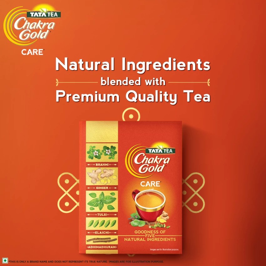 Every cup of Tata Tea Chakra Gold Care packs the traditional known benefits of 5 natural ingredients, blended with superior quality tea. Now enjoy great-tasting tea with added goodness in every sip, every day. The tea has ingredients like tulsi which is known to improve the body’s immunity, ginger known to be good for the common cold and cough, Brahmi known to help improve memory, elaichi known to help with digestion and adhimadhuram is known to be good for sore throat. With an irresistible taste, this tea will leave you longing for more. Chakra Gold Care - Enjoy goodness in every cup!